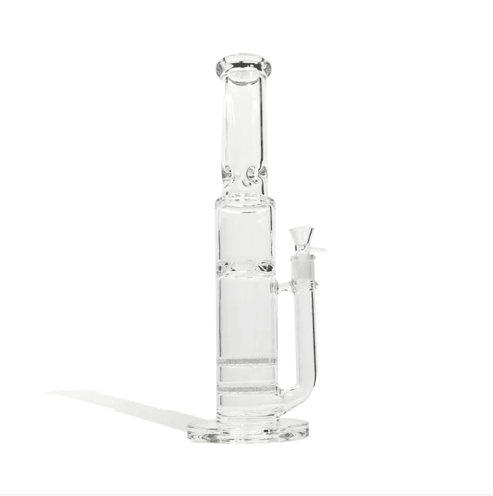 Looking for a cool and efficient water pipe? Check out this 16" pipe with a turbine and dual honeycomb percs! Made from sturdy borosilicate glass, it's perfect for those wanting smooth, mind-blowing hits. With multiple perc layers and added height, this pipe has it all. Plus, it's reinforced and made with extra thick glass for long-lasting use.