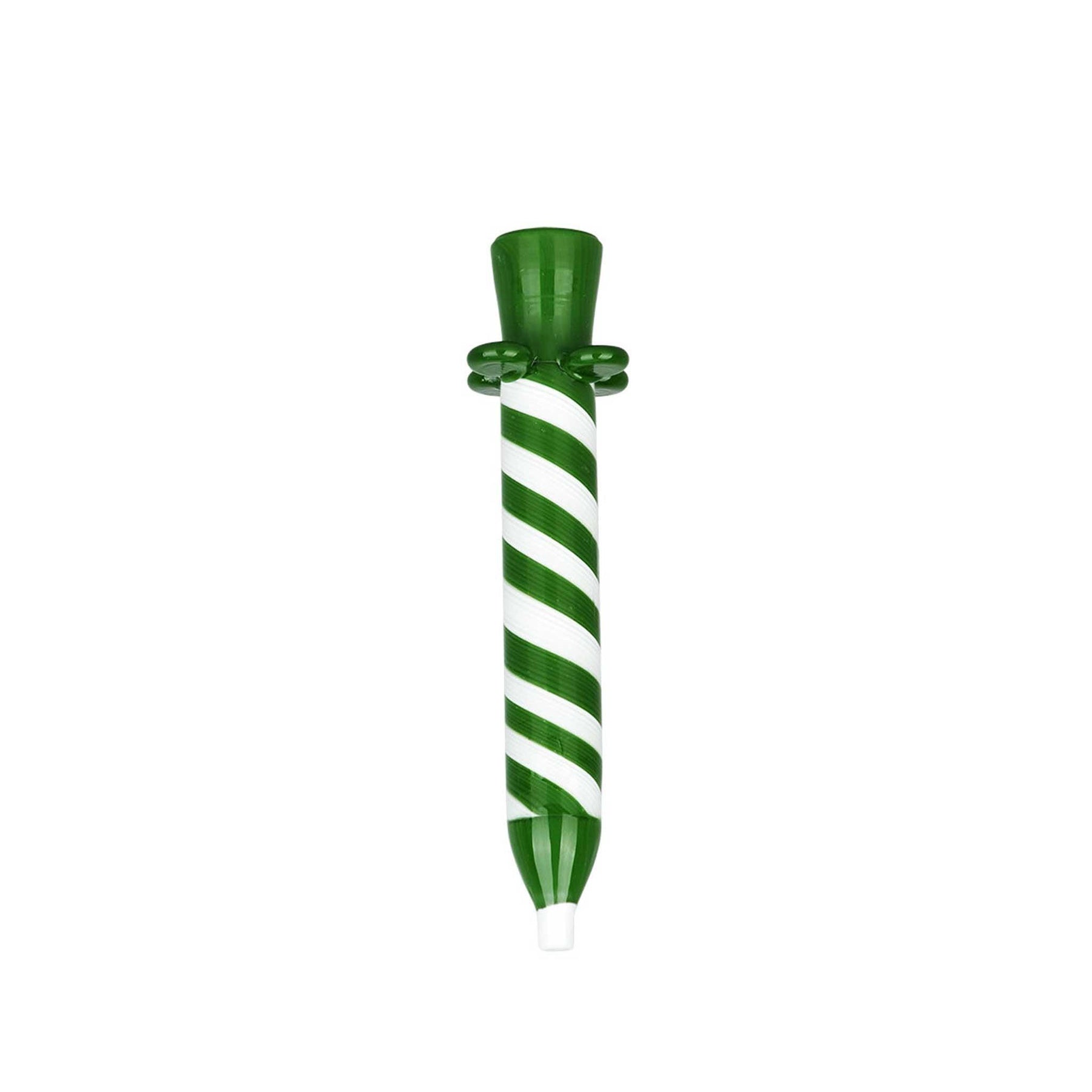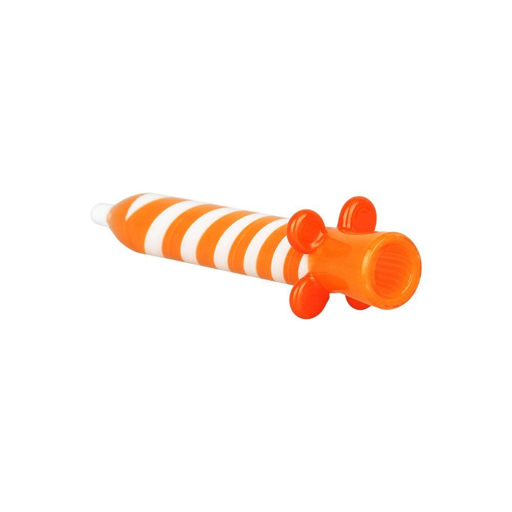 Celebrate every day with the Birthday Candle Glass Chillum - a worked glass pipe that looks like a spiral-striped birthday candle. The flared base prevents it from rolling on flat surfaces. Measures 4.25 inches in length.