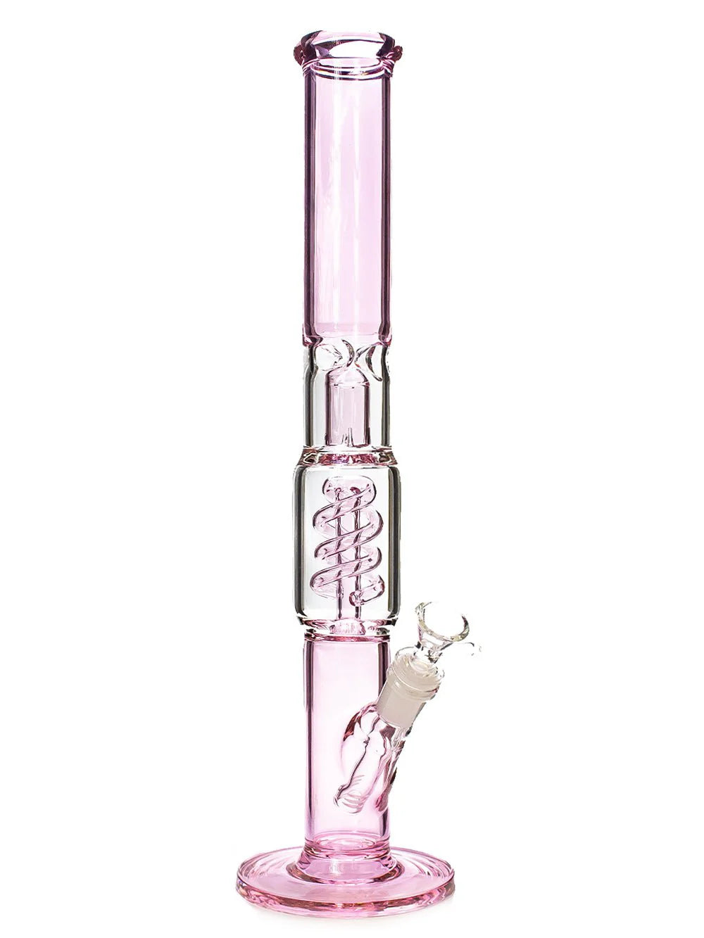 If pink is your style, the Pink Twist Bong is a must-have. This eye-catching piece showcases pink accents, including a twist percolator and splash guard. With its ice catcher, twist percolator, and slotted downstem, this bong ensures smooth, satisfying hits with every use.