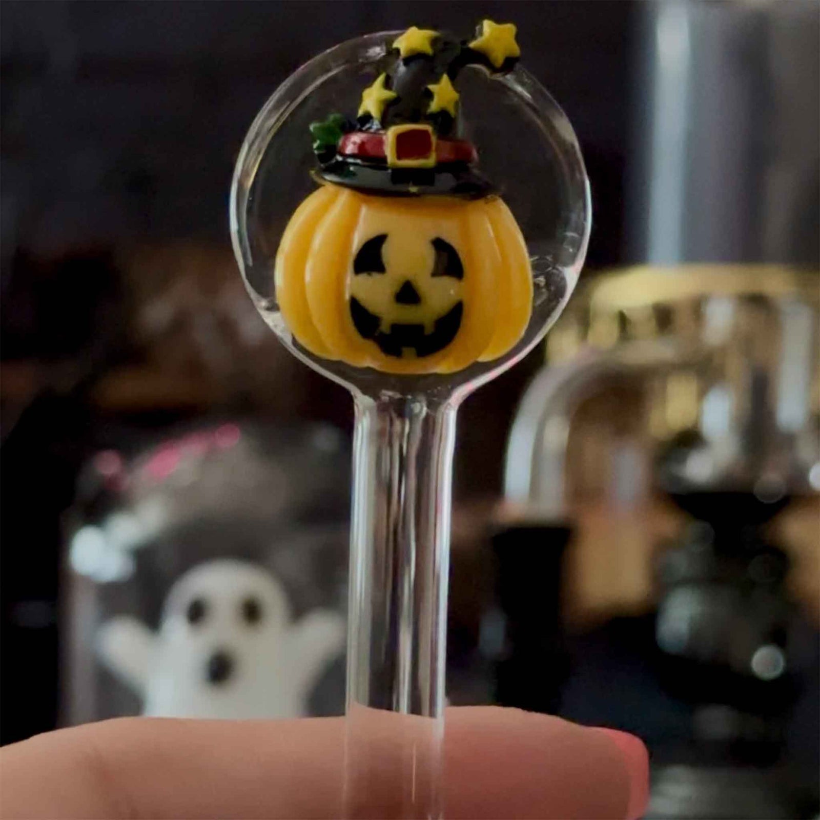 Get ready for festive dabs with the Halloween Glass Dabber & Carb Cap! Made from premium borosilicate glass, this 5.5-inch tool features a pointed tip for precision and is topped with a cute pumpkin-themed 30mm spinner carb cap. It's perfect for adding some festive fear to your sessions while ensuring your concentrate hits smooth and strong. Grab one before they disappear!