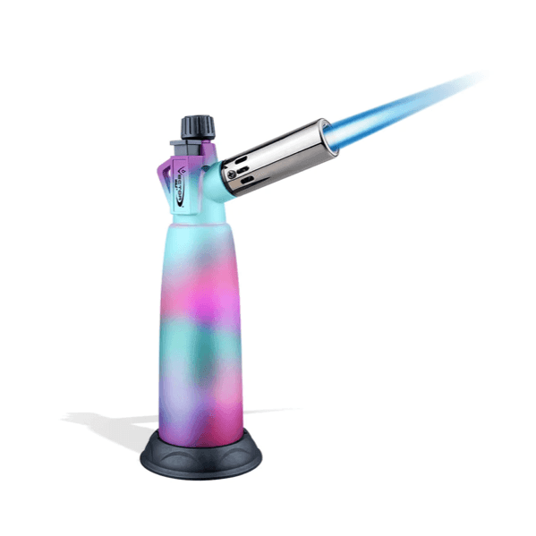 True to its name, the Wulf Mods Warhead Torch is expertly designed for intense, high-heat sessions. It features a flame height adjuster and an ignition hold for continuous use. The igniter button is conveniently placed on the back for easy access. With the ability to reach up to 2800°F, the adjustable flame height allows you to customize your heating preference. Measuring 7.9 inches in height and 4.7 inches in width, this torch is highly portable. The Warhead Torch not only boasts a sleek design but also delivers powerful performance, producing a robust flame that easily lights any device.